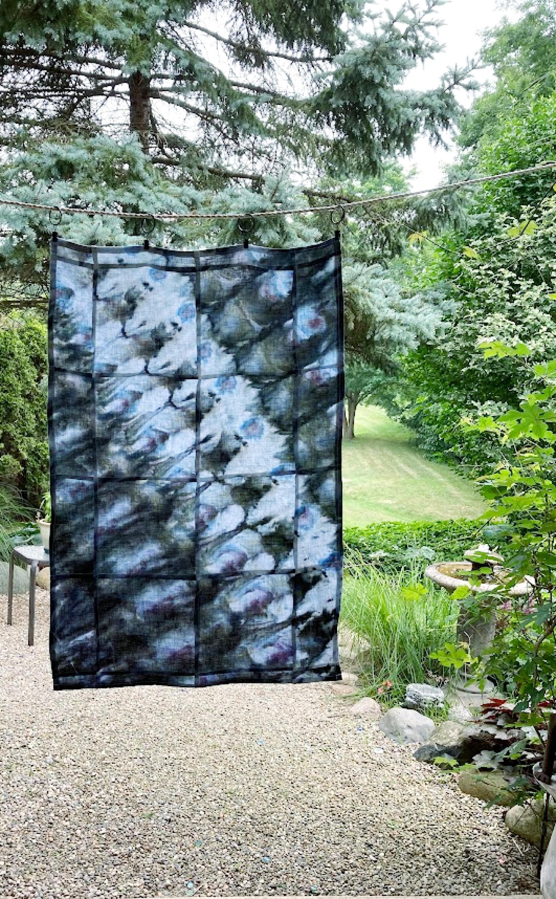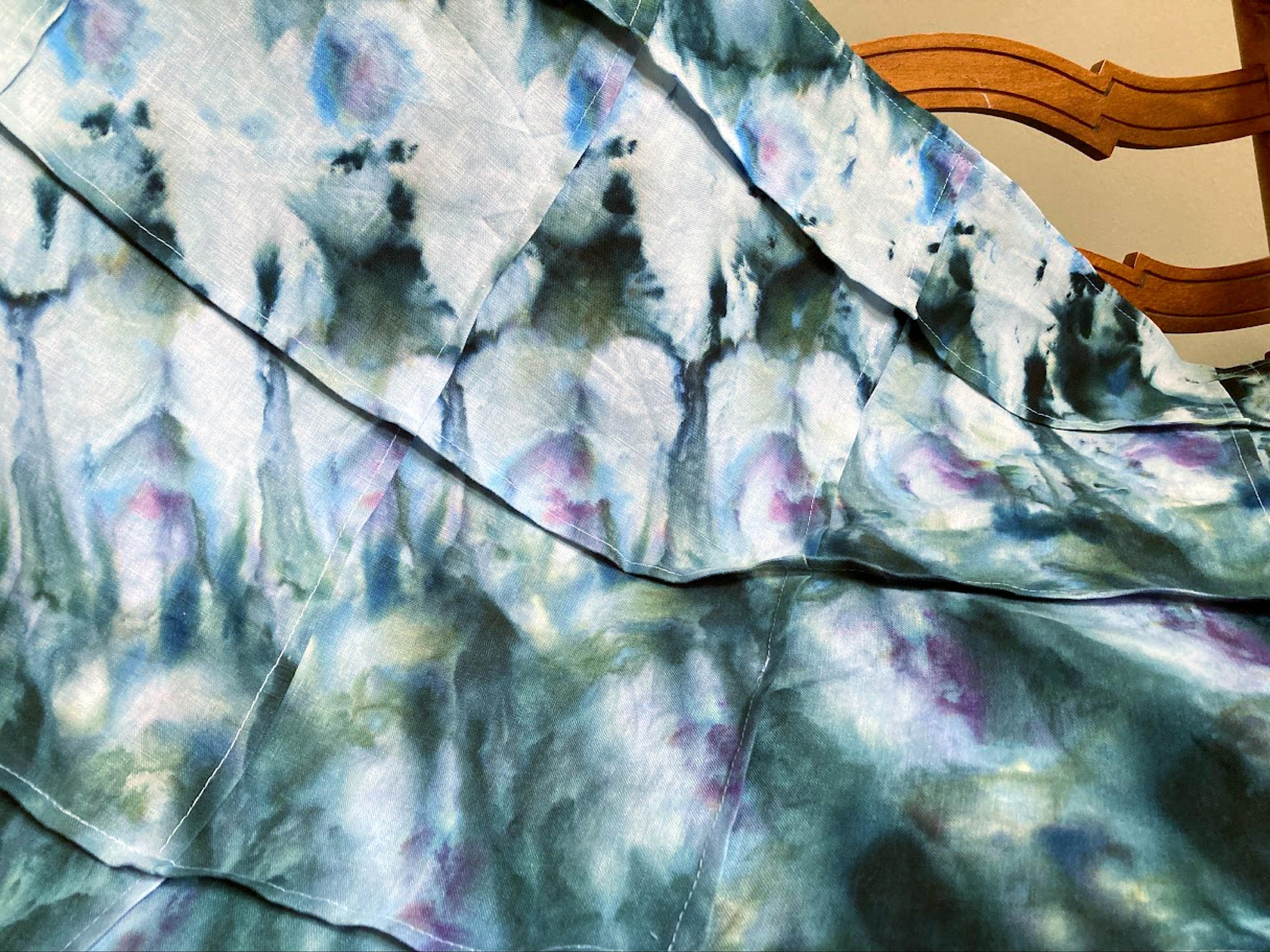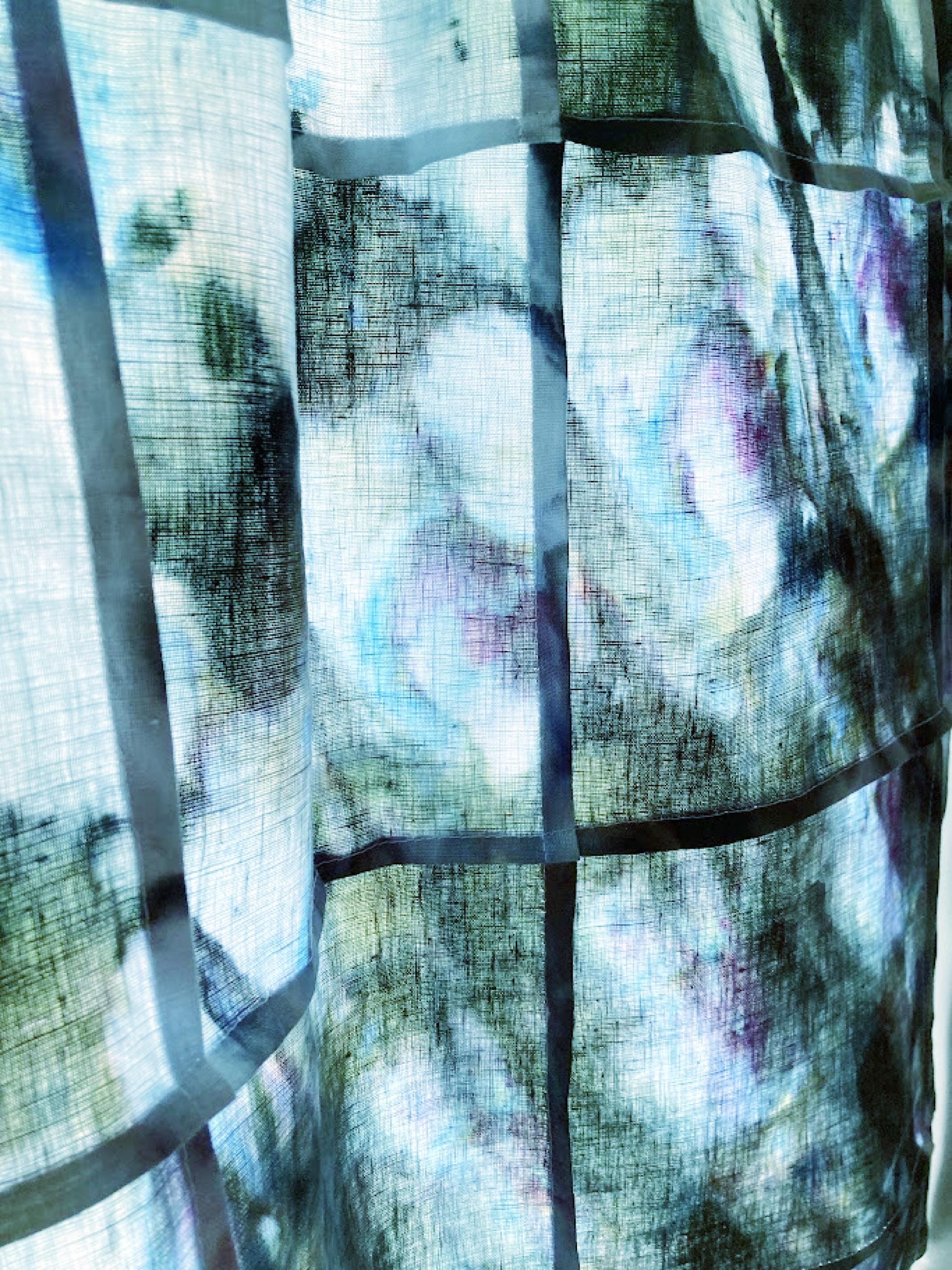 Shibori Curtain Panel: Hand-Dyed Organic Linen, Sea Green Abstract Art