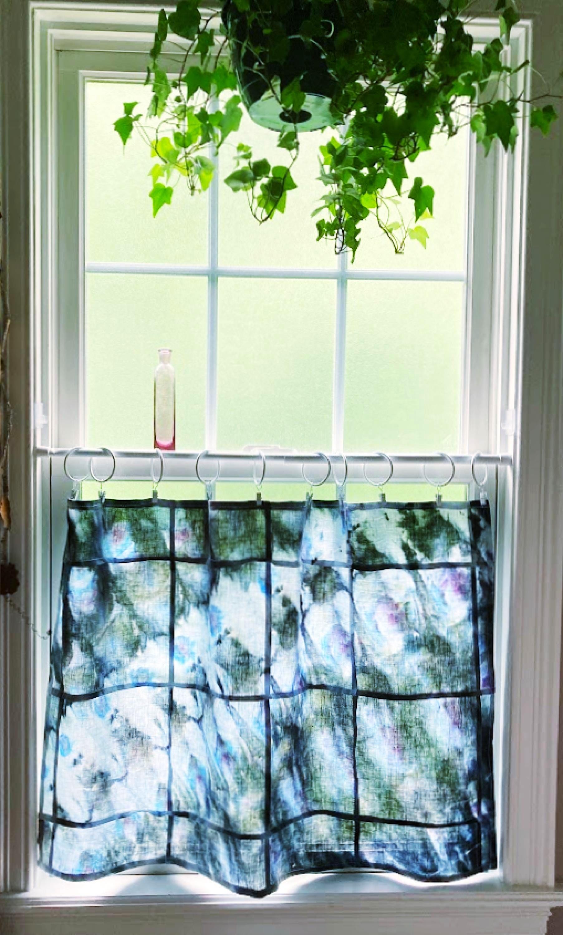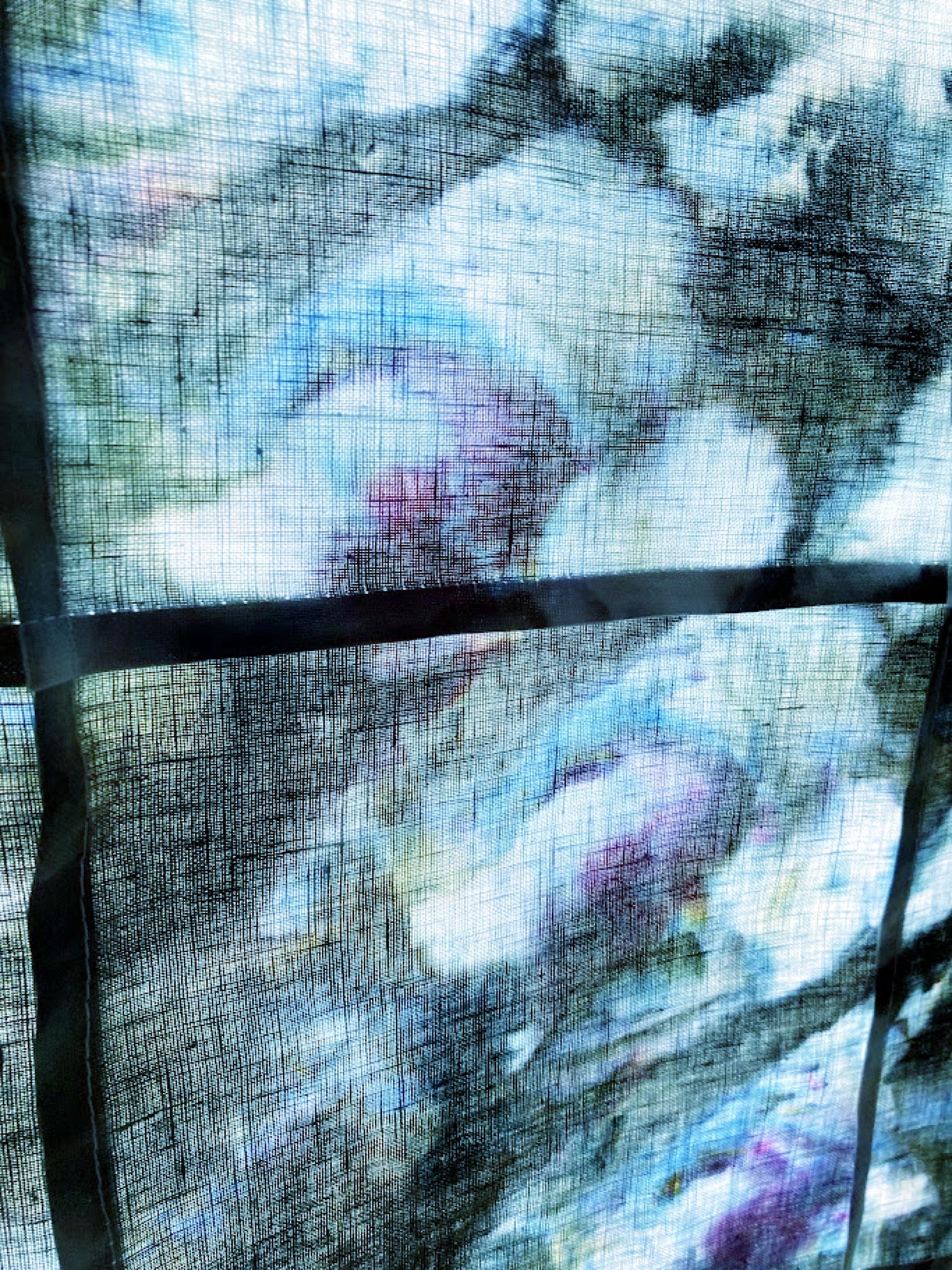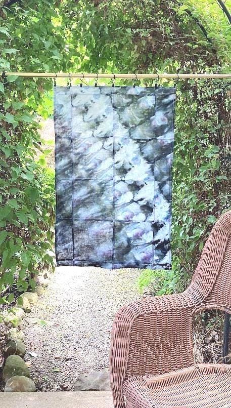 Shibori Curtain Panel: Hand-Dyed Organic Linen, Sea Green Abstract Art